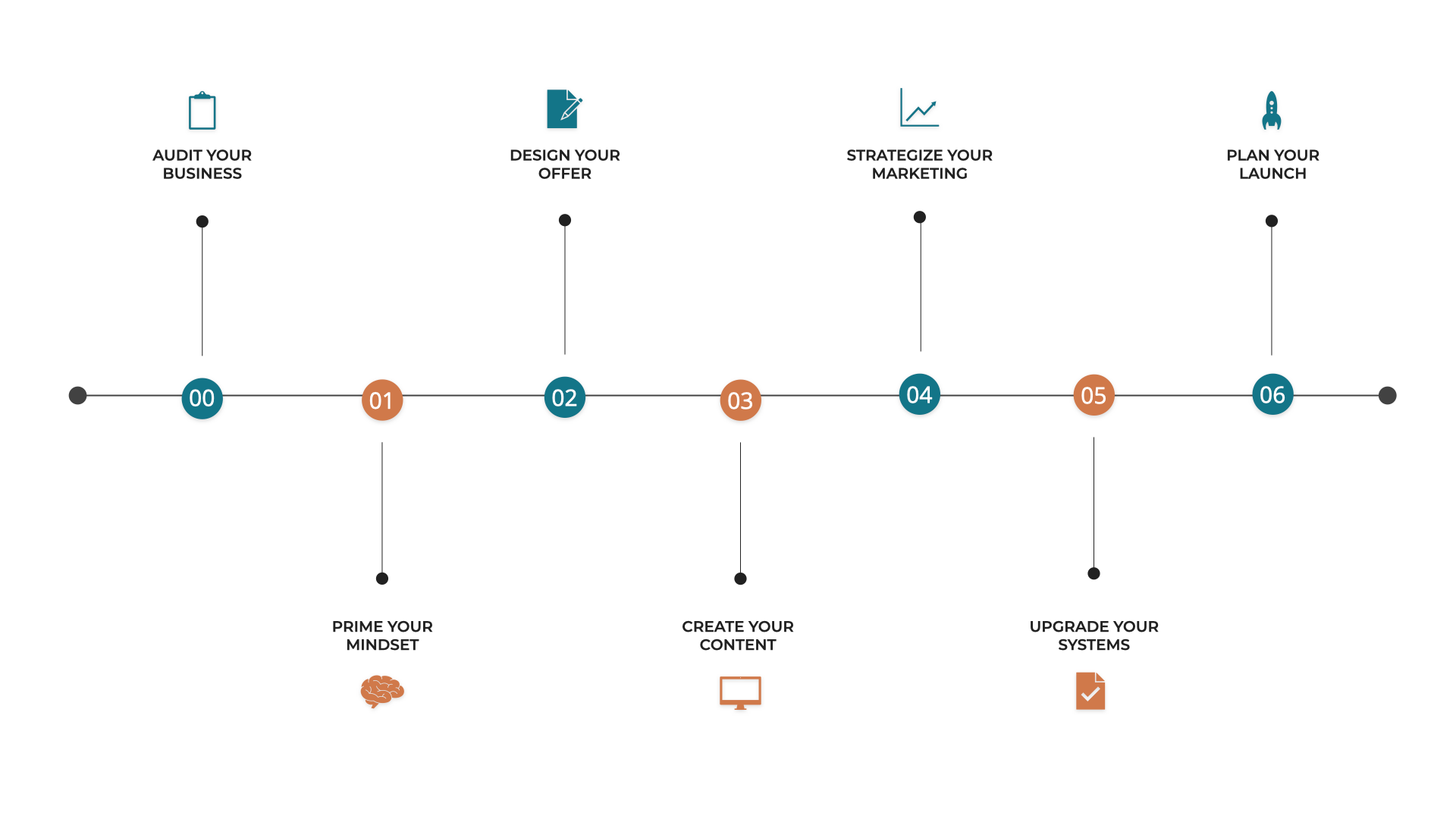 Every 2 weeks, we’ll tackle a core phase of your scalable offer’s success. Designed for already busy entrepreneurs, each module dedicates one week for education, and the next for implementation, so you have time to launch in 90 days while serving your existing clients.